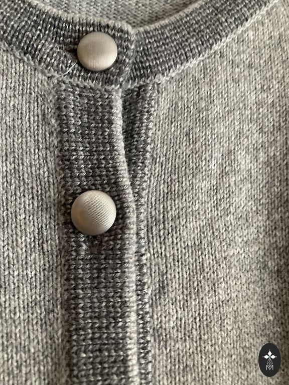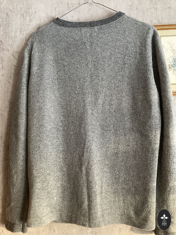 Megztinis Clements Ribeiro, dydis L, mišri sudėtis 50% viskozė; 22% vilna; 8% angora; 20% nailonas, pusapimtis po krūtimis 45 cm, nugaros ilgis 61 cm.
