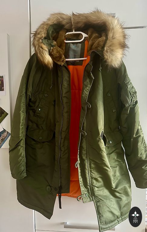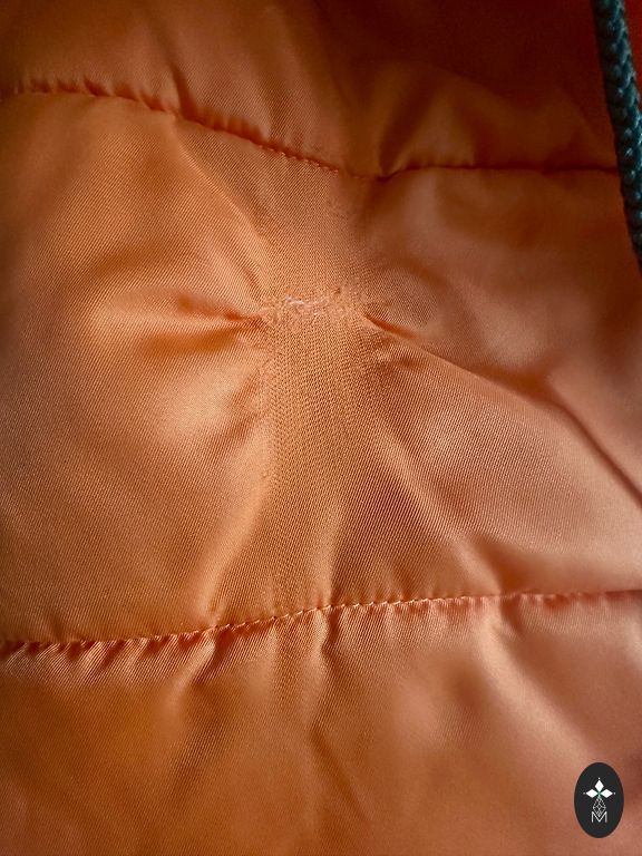 Defekts- trūkst divi zobiņi rāvējslēdzējam. Bet aiztaisot ciet ar pogām un ja pa virsu ir šalle neko nevar pamanīt un nekas netraucē.