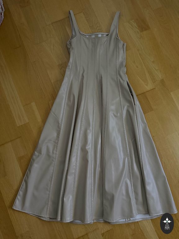 Бронированное платье с подкладкой, указан размер S, но подойдет даже для небольшого размера L! Рукава с завязывающейся ленточкой!