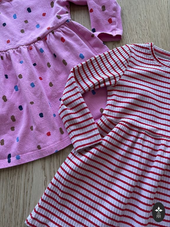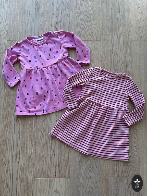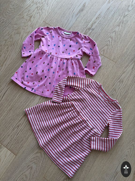 Pink ribbed dress name it size 98, the last photo shows a flaw (color on the sleeve on the other side). It is not noticeable in everyday wear, I also noticed it while photographing the dress! š«£great for everyday activities. š