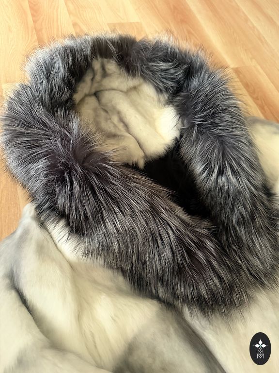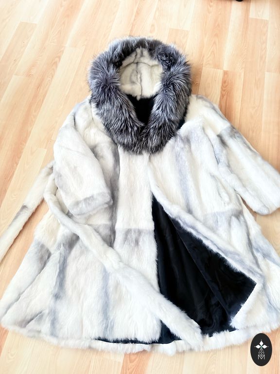 Ilus naaritsanahast mantel kapuutsiga.