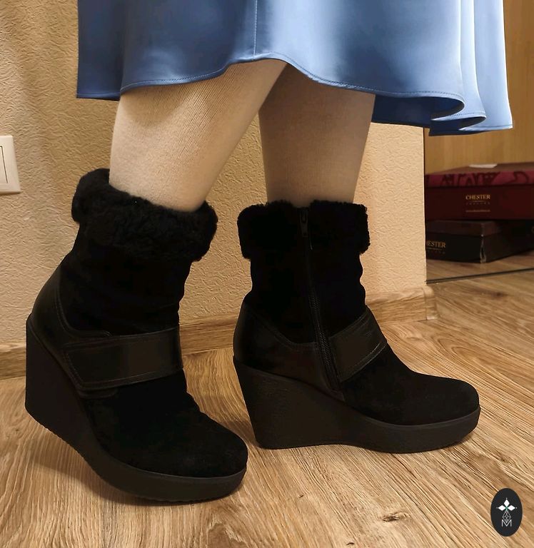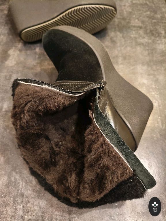 Batai NE siaurai kojai. Šis modelis parduodamas Gabi parduotuvėse, todėl juos galima iš anksto pasimatuoti ten, kad būtumėte tikri, jog jie jums tiks (dėl 38 dydžio prieinamumo žiūrėkite parduotuvės svetainėje). Vidpadis ir pamušalas iš natūralaus kailio. Kulno aukštis 4,5 cm.