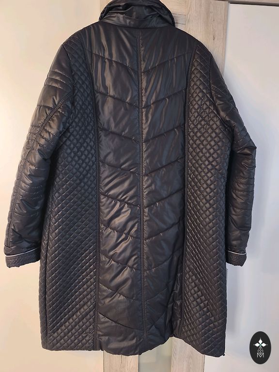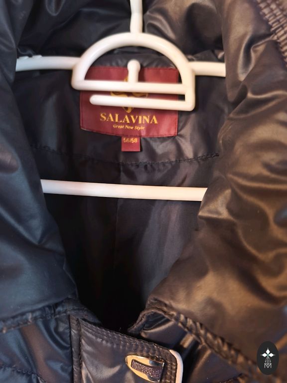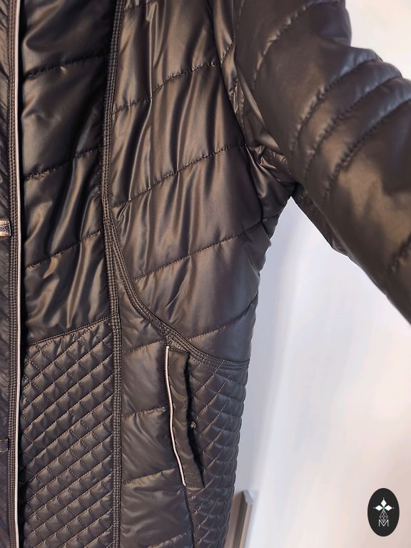 XL-XXL derēs, jauna šokolādes krāsā. Absolūti skaista jaka ar noņemamu kažokādu, kažokāda izskatās kā dabīga. Krūšu apjoms 62 cm, plecu platums 50 cm, garums 65 cm. Krāsa kā uz modeļa.
