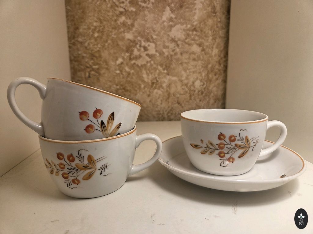 Servīze Vasara 6 personām, viss ļoti labā stāvoklī, izņemot brūnajām apakštasēm mana novietojumu. Varu dalīt.