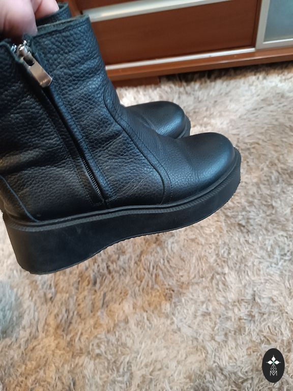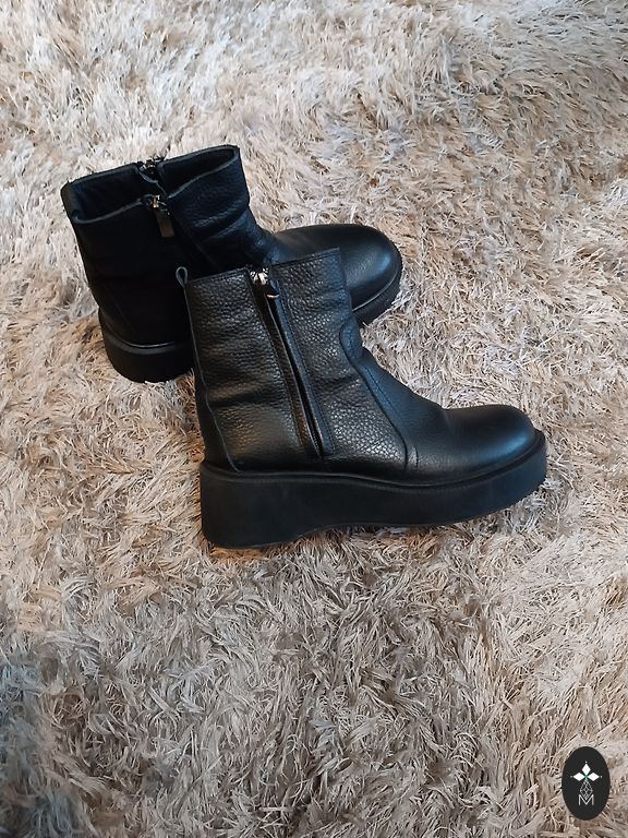 Nahast poolsaapad soojustatud villaga.