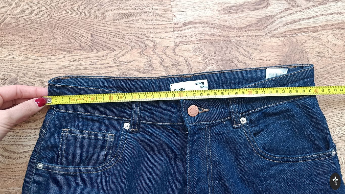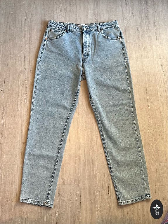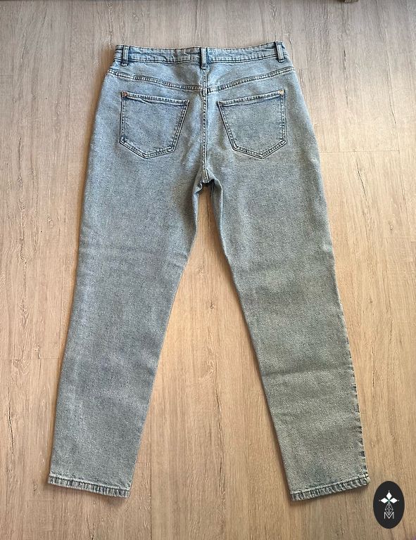 Новые джинсы, размер 46. Из-за большого живота не подходят.