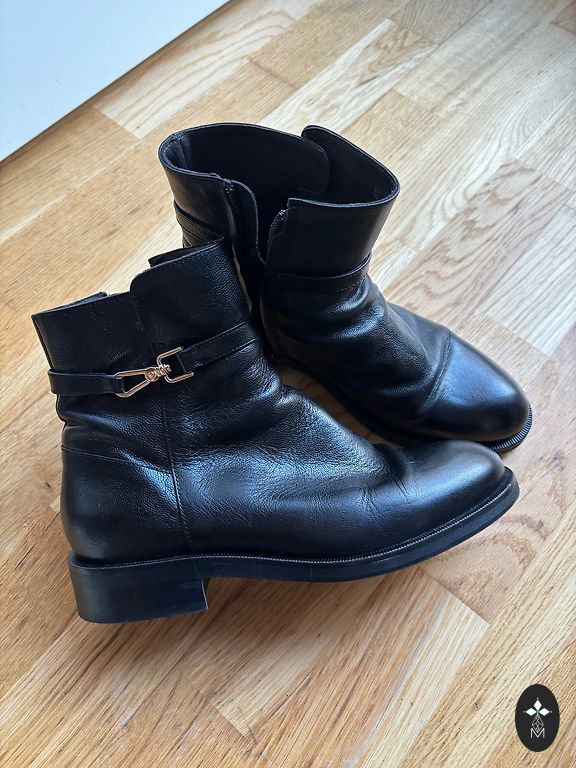 Ļoti maz velkāti Guess ādas zābaki, vienīgais trūkums pie dekoratīvās jostiņas noberuzies krāsa, bet to knapi var pamanīt!