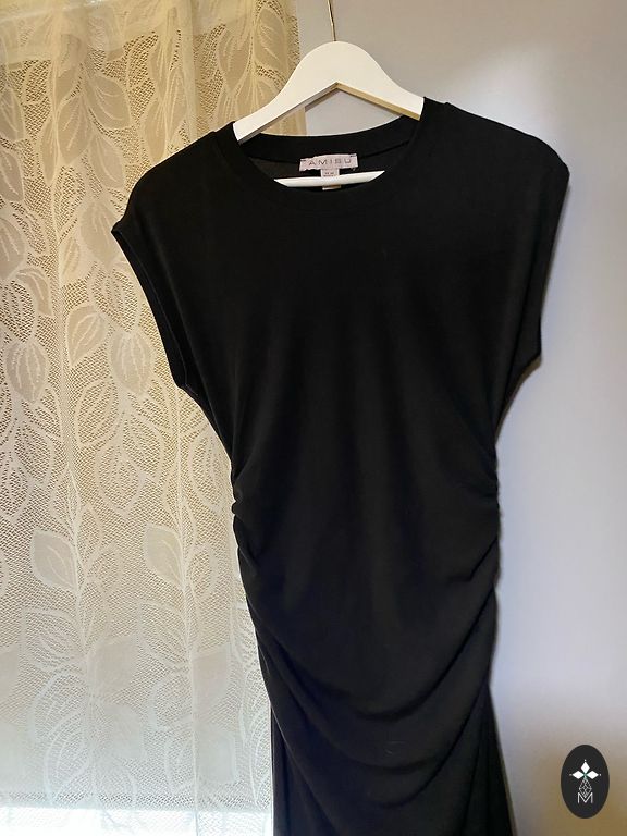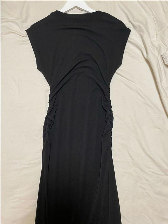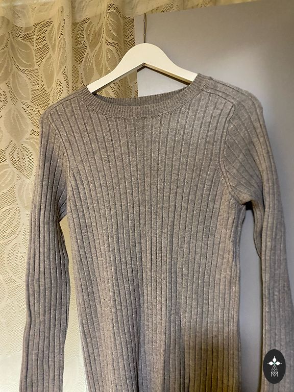 Kleit suurte triipudega, huvitav kaelus, mida saab venitada kas esemete peale või jätta kaela ümber veidi pikendatud nagu pildil. Pole kasutatud. Kleit on soe raskest materjalist.