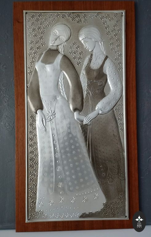 Sovietmečio valdžios metalo kalimas - čekanka, pritvirtinta prie pagrindo. Metalo kalimo matmenys 28 x 28 cm. Galima atsiimti vietoje arba siunčiu per paštomatą.