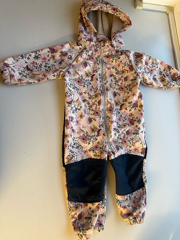 Kelnių bendras ilgis 58 cm, vidinės siūlės 38 cm. Striukės ilgis priekyje 40 cm/nugaroje 44 cm, krūtinės apimtis 70 cm, rankovės ilgis nuo apykaklės 43 cm, 29 cm nuo pažasties. Striukė iš EcoEmi, kelnės siūtos pagal užsakymą. Ant kelnių siūlės mažas dėmelis - matomas nuotraukoje.