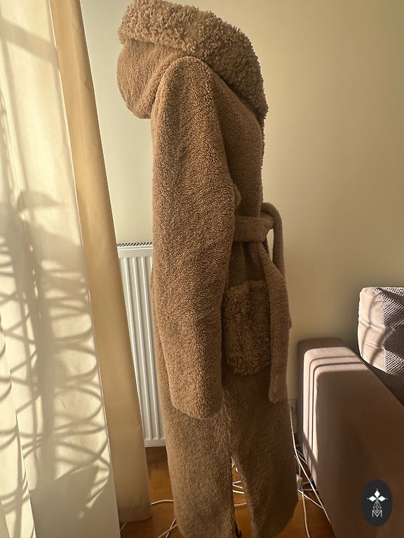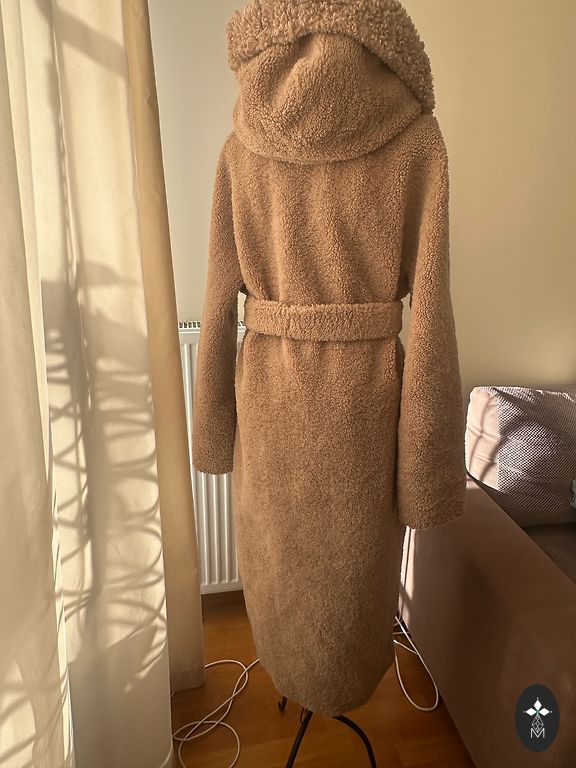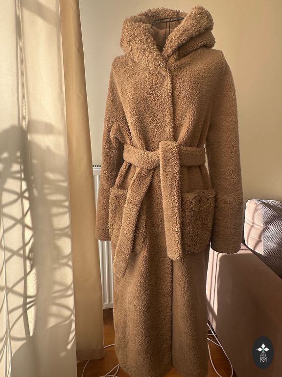 Dydis S, spalva kaip nuotraukose, mažai dėvėtas. Ilgis nuo peties 85cm, nuo apykaklės 90cm, krūtinės apimtis 53cm x2, klubų apimtis 55cm x2. Ką tik iš cheminio valymo.