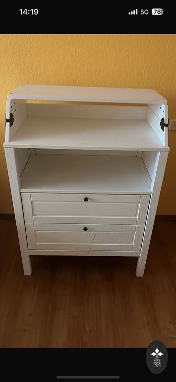 Комод для пеленания Ikea SUNDVIK, использовался немного меньше года, но использовались только ящики. Саму пеленальную часть не использовали. К сожалению, кот немного оставил следы когтей, видно на последнем фото, остальное все в очень хорошем состоянии. Самовывоз, находимся в Риге, Саркандаугава.