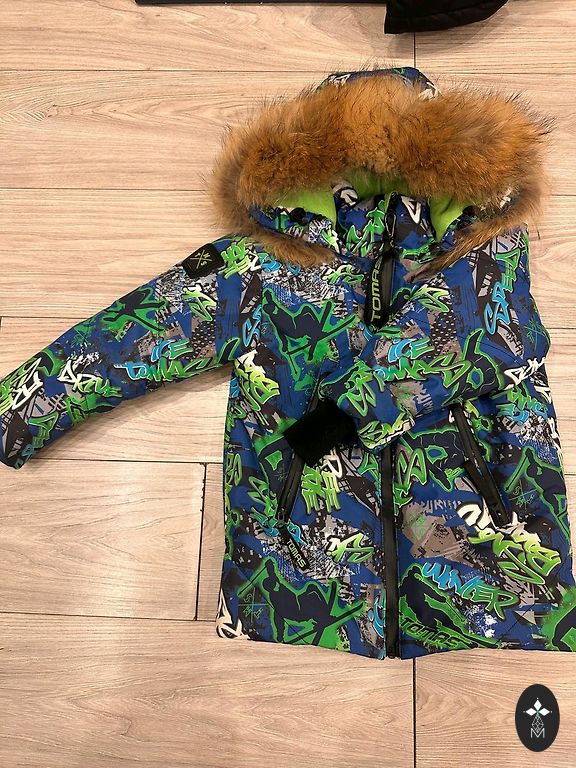 Классный и стильный комбинезон Didriksons. Размер 100. Носили два мальчика. Удлинительные складки распущены. Есть непонятные пятна, которые я не умею отстирать. Нет резинок, которые цепляются за сапоги, но их, вероятно, можно где-то купить отдельно.