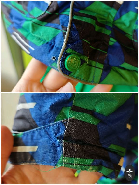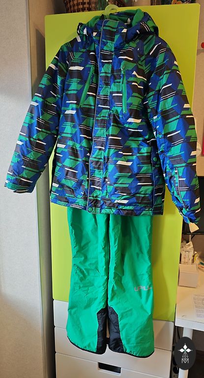 Very thick, warm set. Defects visible in the pictures, on the sleeves. No other defects. Two pairs of pants, sizes 104 and 110. Polyester, thick, with elastic bands at the bottom.