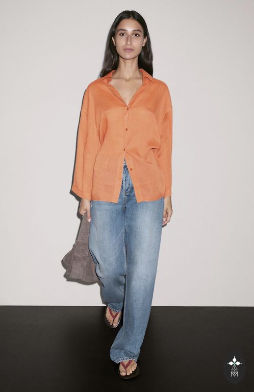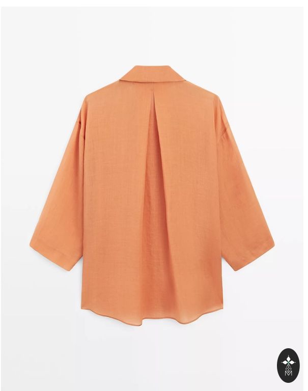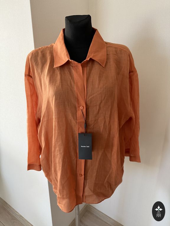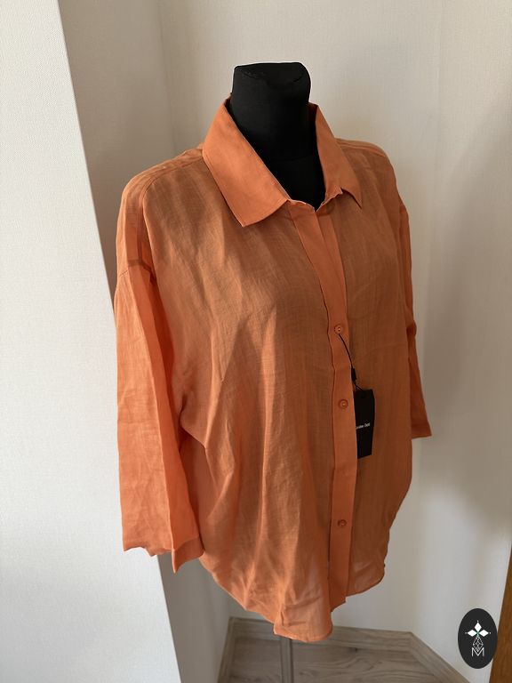 Selling a lightly used, excellent condition bright orange top. It has a fine knit fabric at the bottom, not transparent. Length 58cm.