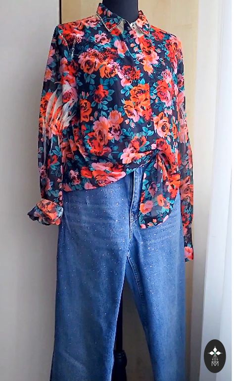 Ļoti labi izskatās gan ar džinsiem, gan ar klasiskām biksēm vai svārkiem. Audums patīkams, viegls,neburzās.