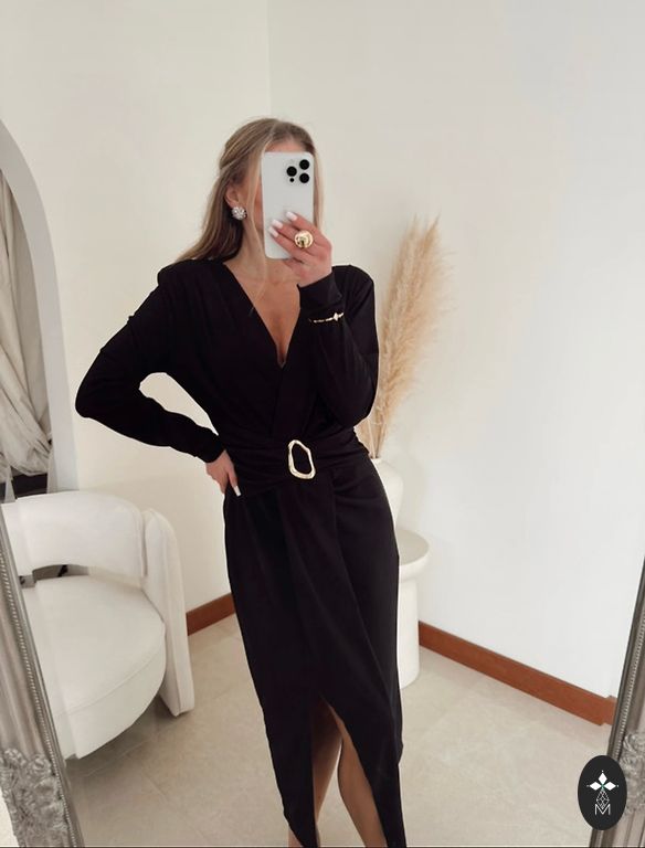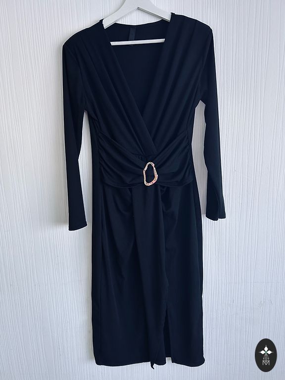 Minu pikkuse 164 jaoks ulatub pikkus kenasti põlveni, istub väga ilusasti. Kleidi kangas on väga tugev, sisukas, hoiab hästi vormi. Alumine vooder on pehme, peal on tugev võrgutaoline kangas. Kleit sobib kõigi kuldsete aksessuaaridega.