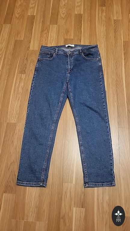 Голубые джинсы Zara Mom Fit, размер 42 (EUR). Высокая посадка, плотный деним, отличное состояние. Подойдут на каждый день.