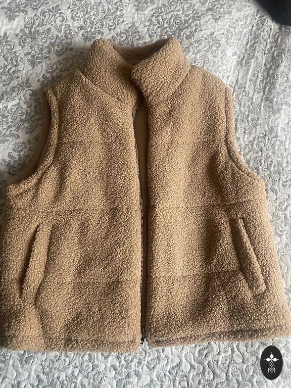 Natūralus poliarinės lapės kailis, rankovės nuimtos, vienai rankovei reikia pakeisti užtrauktuką, todėl naudoju kaip liemenę, tiks S/M dydžiui.