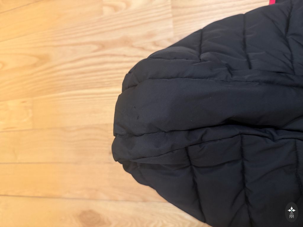 Kapucē palikušas redzamas vietas, kur ar saspraužamo adatu bija piesprausts bumbulis. ( sk pedejo bildi)