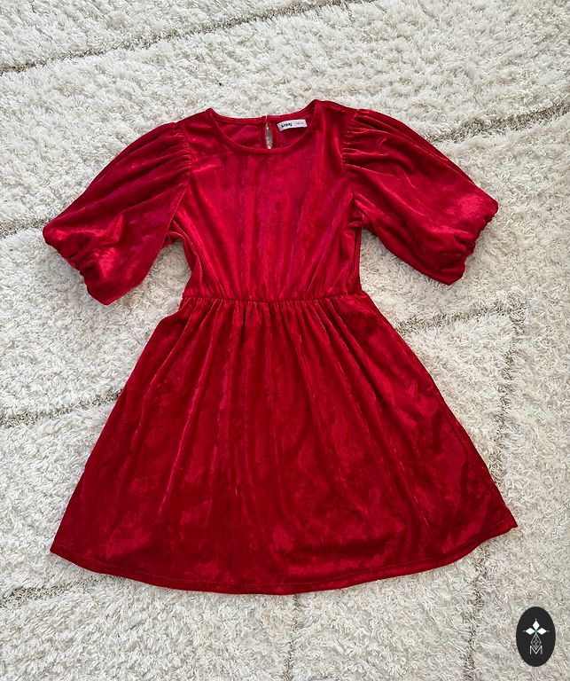 Juodo aksomo suknelė 152 dydžio, rankovėse elastinė juosta, tiks jau nuo 146 cm.