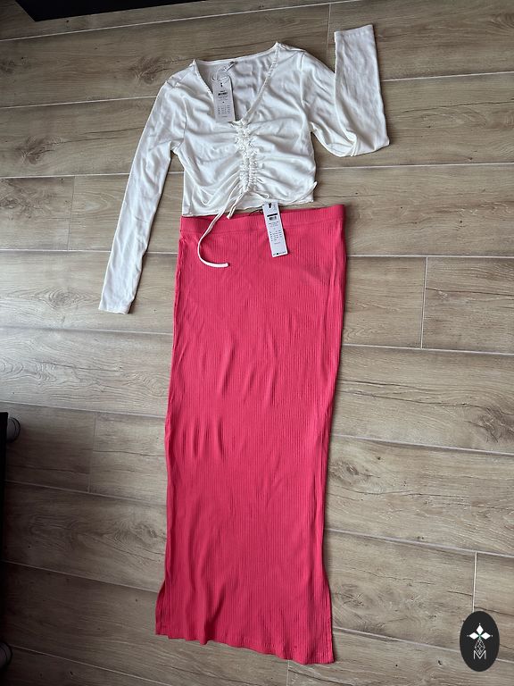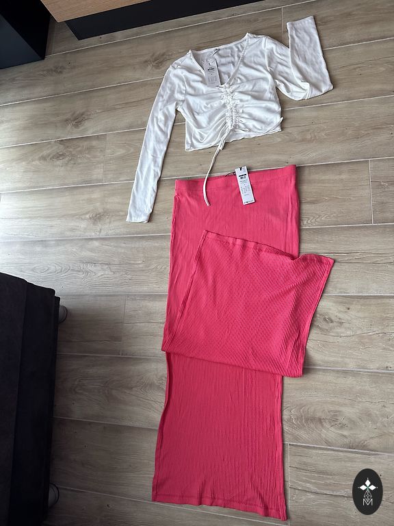 Täiesti uued vormid, saadetud Aliexpressist, kuid ei ole selga pannud. Umbes 46. suurusele. Üks mudel. Kangas ei ole paks. Üks komplekt must, teine komplekt punane. V-kujuline kaelus. Pükstel on küljetaskud reitel, allosas pahkluu juures kitsenemine kummiga.