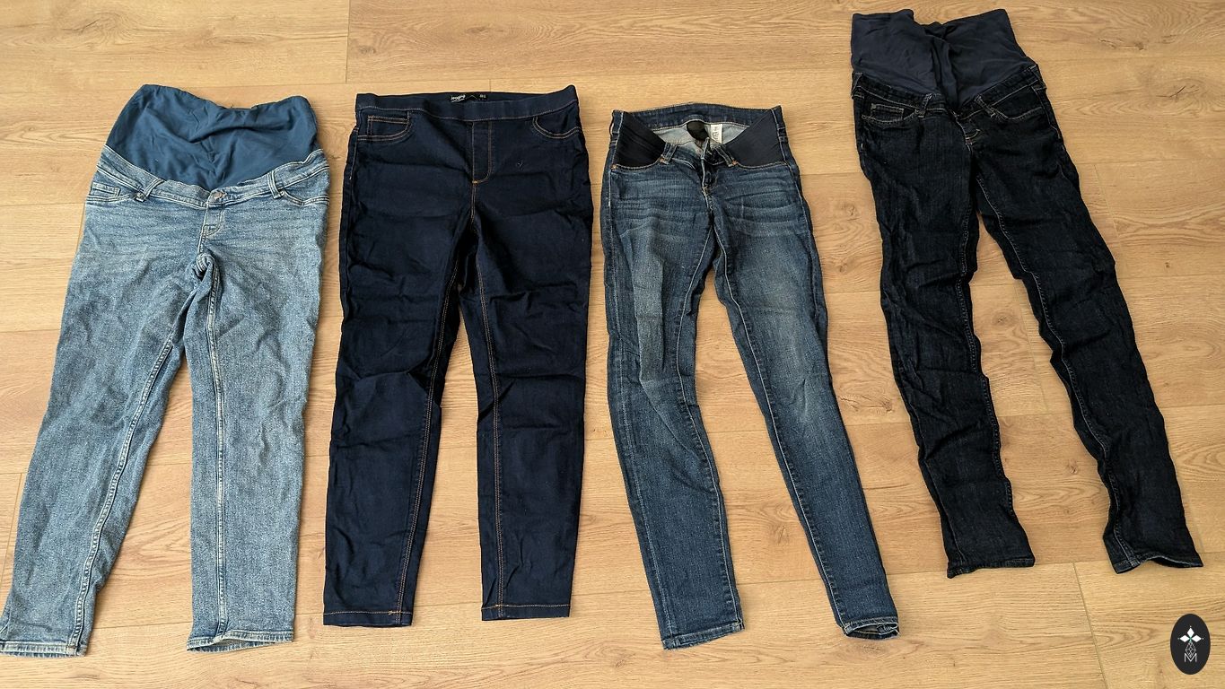 2 шт. брюки размера 40 - HM и New Look Maternity (синие джинсовые и черные).