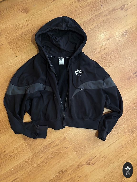 Коричневая куртка из искусственной кожи. Спереди большие карманы. Застегивается на молнию. Внизу есть возможность затянуть потуже.