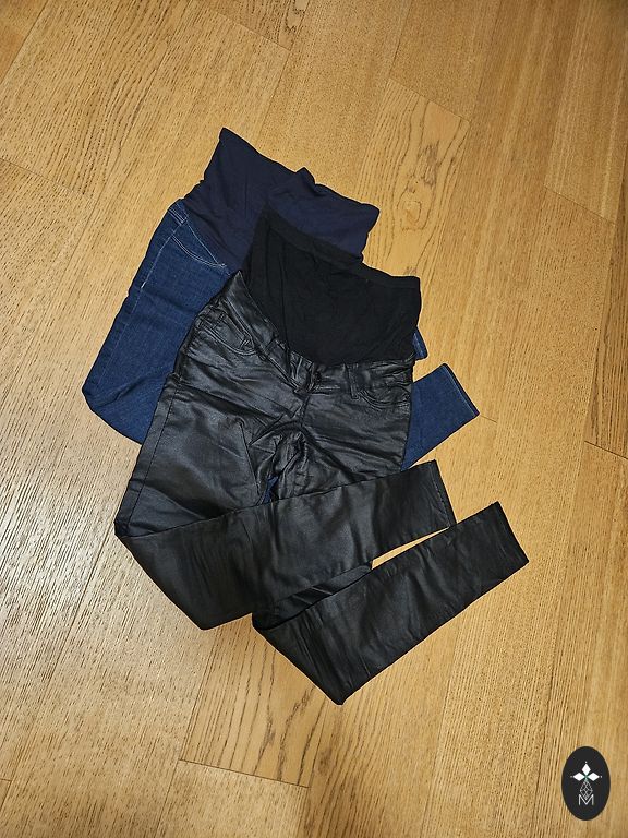 Удобные брюки для беременной, в области живота мягкая, эластичная ткань. Можно носить долго, так как ткань покрывает весь живот и хорошо растягивается. Указан размер 34, но не соответствует, скорее это размер 36 и подойдет также для меньшего размера 38. Носились мало, в хорошем состоянии.