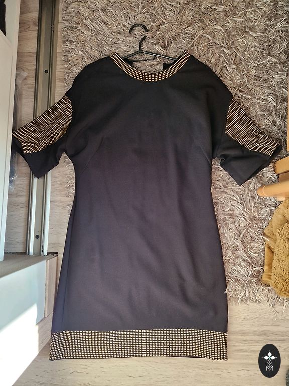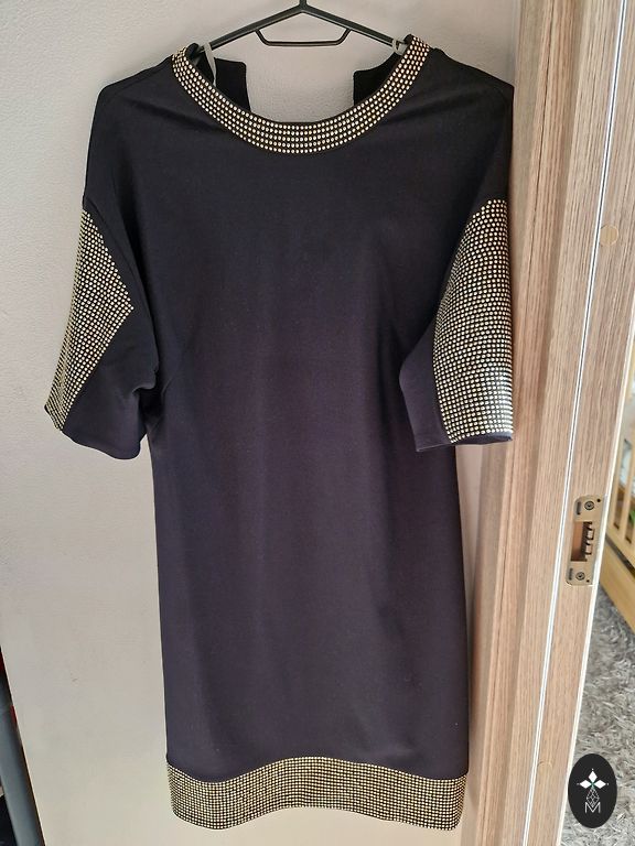 Practically new, small black dress, can be used for everyday wear or evening. Beautiful gilded buttons. Inquire about measurements.