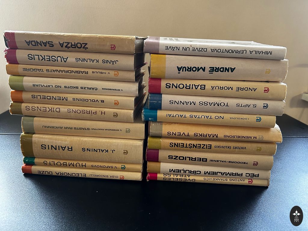 Müün vintage Riia portselanist serviisi, mis on valmistatud Riia Portselanitehases (RPF). Komplekti iseloomustab modernistlik disain kollase glasuuriga ja mustade graafiliste joontega, samuti Riia Kunstimuuseumi motiiv karafil.