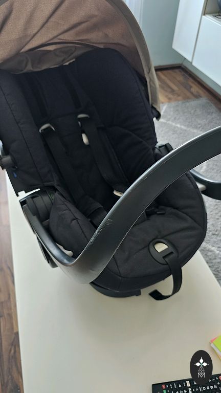 Palyginti mažai naudai naudotas automobilio kėdutės. Pirkta nauja, naudota vieno vaiko. Pridedu adapterius vežimėliui. Galima tvirtinti tiek ant bazės, tiek su diržais. Atsilošia į gulimą padėtį.