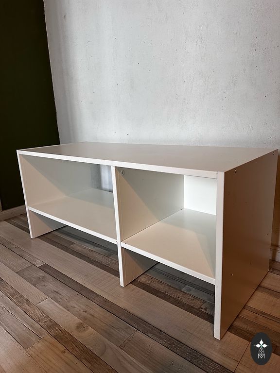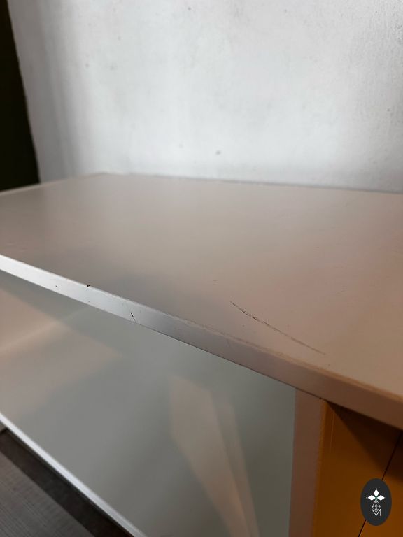 Stabili knygų lentyna su nedideliais naudojimo požymiais - nuo kelionių yra keletas įbrėžimų, kuriuos galima greitai uždažyti.