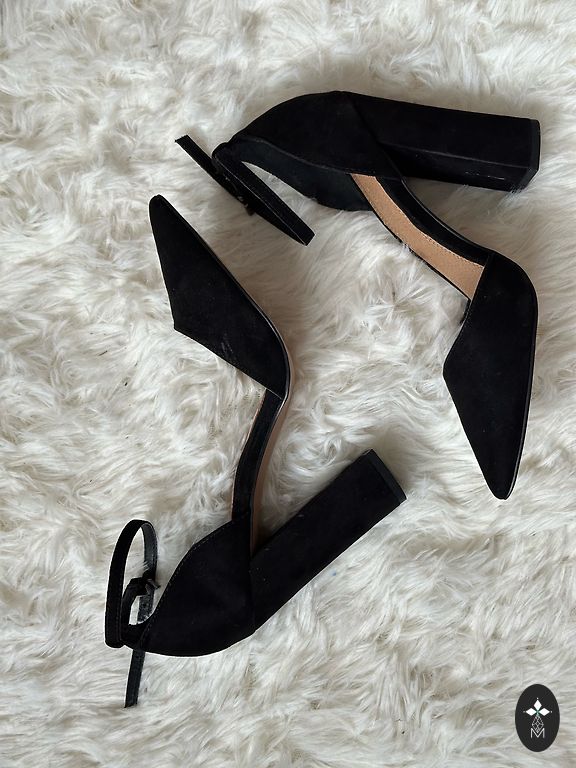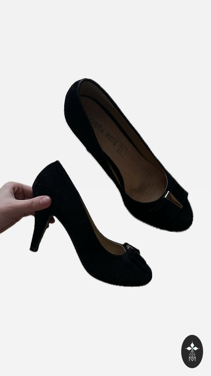 Lietotas 1 dienu. 40. Izm. (size 7). Papēdis augsts 11 cm, bet plats un stabils. Melns zamšs. Ļoti sievišķīgas.