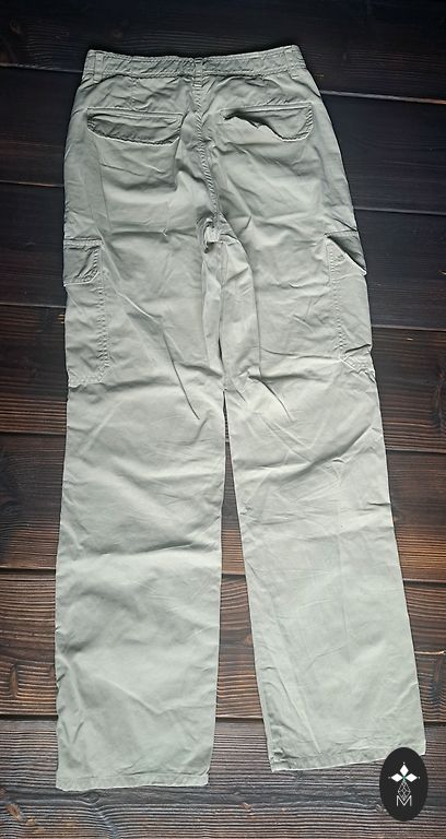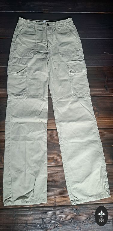 Zara kelnės, dėvėtos 1 kartą. Defektų nėra, būklė puiki. Etiketės nukirptos. Dydis S Ilgis 103 cm Plotis klubų srityje 49 cm Juosmens reguliuojamas. Šonuose kišenės.