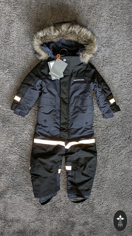Įsigytas čia pat, uždėtas kelis kartus šią žiemą, nes tapo per mažas. Nurodytas 80 dydis, bet tikrai tinka iki 92, prailginimas nenaudotas. Matomi naudojimo požymiai, bet tolimesniam naudojimui visiškai netrukdo, tik trūksta kojų gumos, bet mes apsieiname be jų.