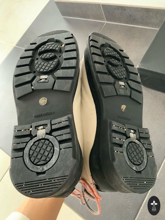 vargu ar labai šilta, vienos kulno dalis išplyšusi, nurodytas dydis 38/40, geriau tiks 39, nebėra tokie balti ir gražūs kaip pradžioje, prie pado nedidelės įtrūkimai.. 15 eurų, vidpadžio negaliu išmatuoti. yra dar viena nuotrauka