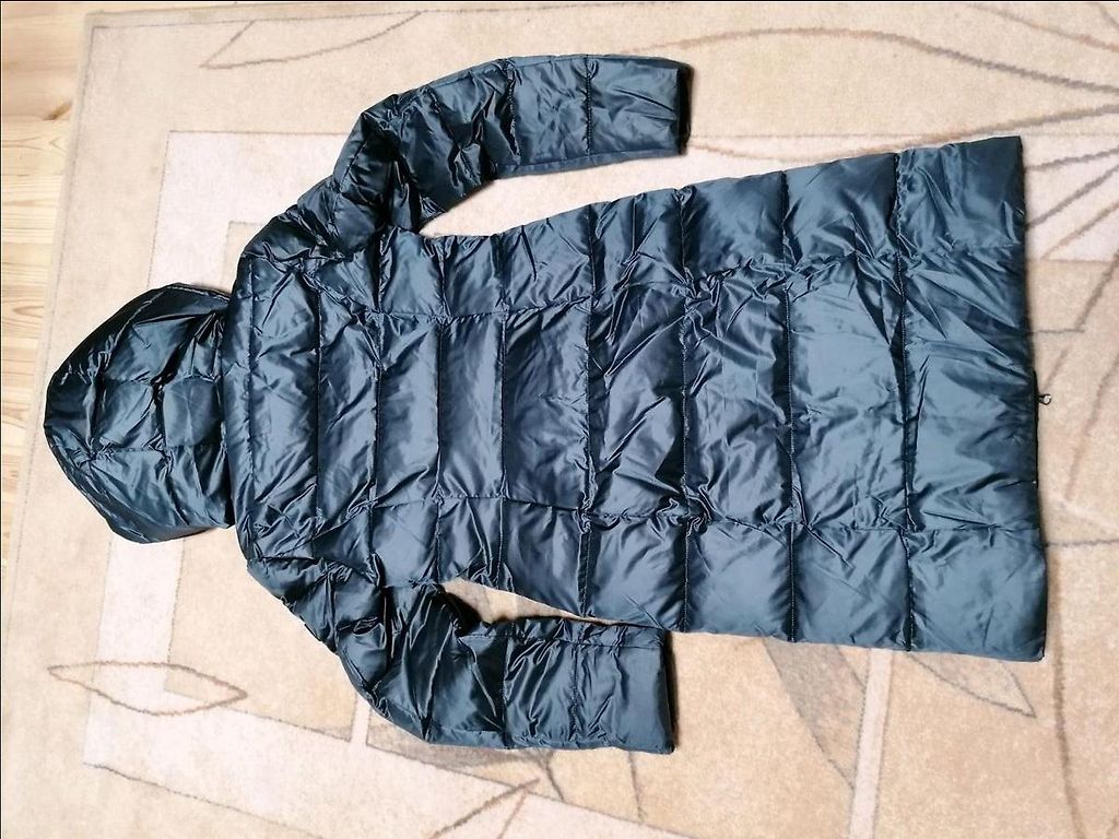 Pečių linija nuleista, tiesus modelis, kišenės yra.