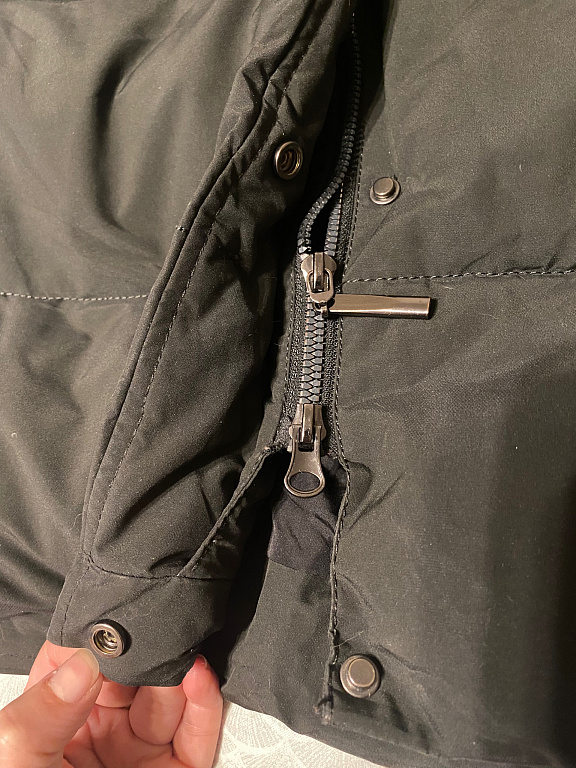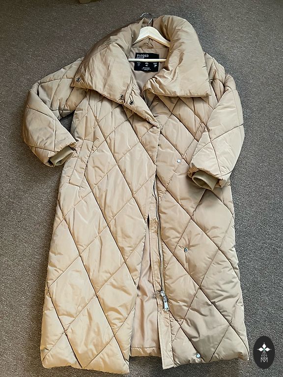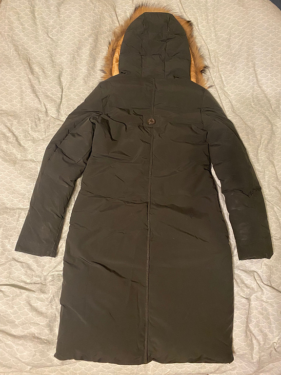 Ilgis 101 cm. Nuo pažasties iki pažasties 50 cm. Nedidelis trūkumas, paskutinėje nuotraukoje. Naudojant nematyti. Būklė gera. Talpios kišenės. Šiltas paltas. Gaubtas nuimamas.