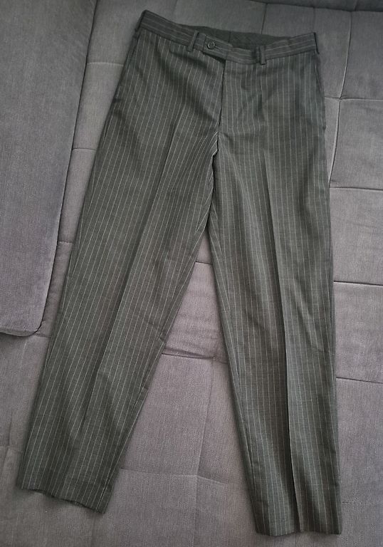 Elegants vīriešu uzvalks, ideāli piemērots biznesa tikšanām, svinīgiem pasākumiem un īpašiem gadījumiem. Žakete ir gaiši pelēkā tonī ar faktūrētu audumu, labi saglabā formu un izceļ siluetu. Bikses ir tumši pelēkas, klasiskā griezuma — veido stilīgu un līdzsvarotu tēlu.