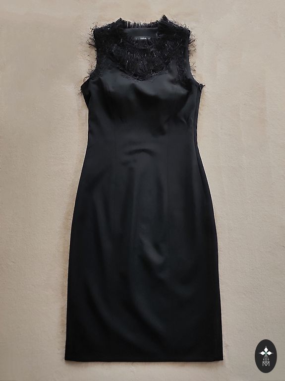 Красивая платье фирмы Reserved размера 40. Подойдет и на размер 38. Платье открывается, перекладывается и завязывается. Не прозрачное. Изготовлено из вискозы и металлических волокон (это цветные элементы). Надето 2 раза, без дефектов.