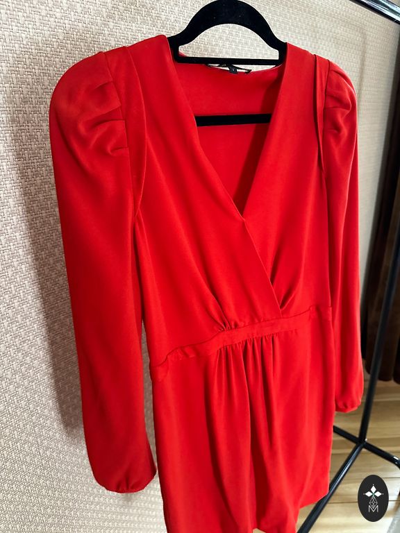 Красное платье размера 36 длиной миди. У платья есть непрозрачная подкладка и полупрозрачная верхняя ткань с кружевным узором. В жизни оттенок немного отличается от цвета на фото, он более ягодно-красный. Материал - полиэстер. Общая длина платья 110 см, длина юбки 70 см. Обхват - груди 86 см, талии 68 см. Доставка не включена в цену.