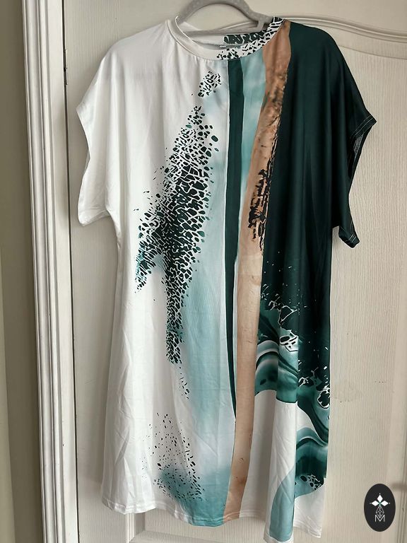 Салатово-зеленое платье-туника с карманами