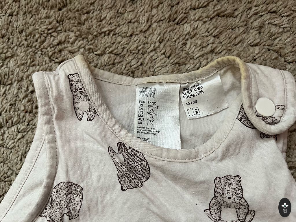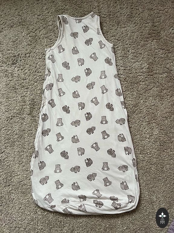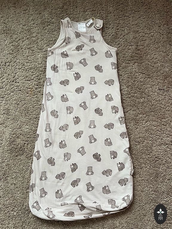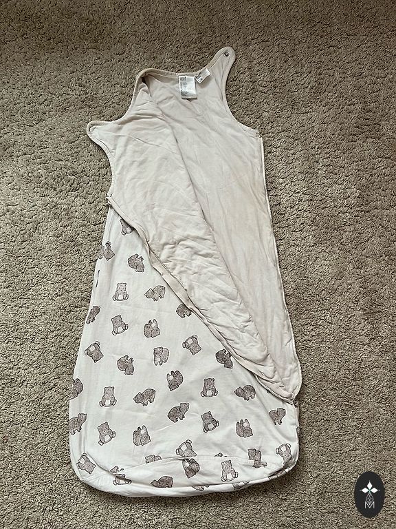 Теплый спальный мешок. Размер до 95 см. Бамбук, хлопок. Есть признаки использования, так как, как и 100% хлопок, он свалялся (видно на фото).