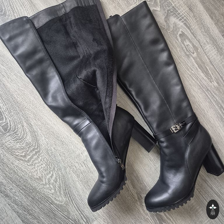 Luciana De Luca exclusive long natural leather knee-high boots. Very soft leather. Inside with light insulation. Warm and suitable for winter. Stable, cubic heel 8.5cm, non-slip, embossed small platform sole 1.5cm, insole about 25.9cm, total boot length 50.5cm, shaft width at the top 18cmx2, rubber insert adds about 2cm. Boots size 41. Actually fits size 40.5. Can be tried on a small and slender size 41. Suitable for owners of slim legs. Perfectly fits the leg. Photos can be seen. Brand new in box. Store price 139EUR. If someone has similar/stable size 41, would gladly exchange. Gift of XS-M/L size clothes, accessories in bulk. Ask.