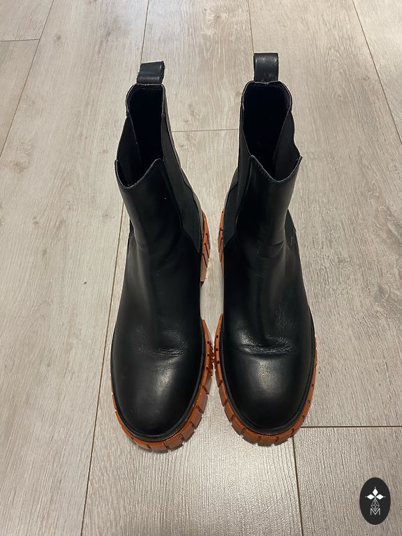 There is slight wear, but overall in good condition. Size 39.