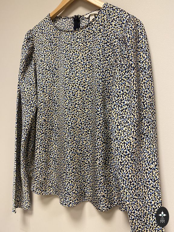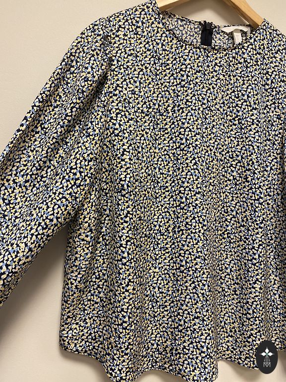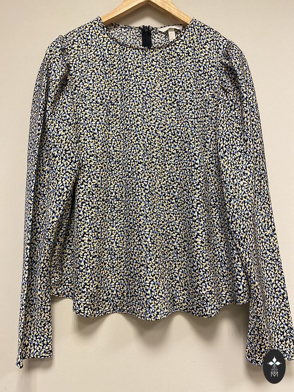 Õlgu paljastav lillemustriga pluus. Mõlemal varrukal on riidetükk, mida saab varruka külge siduda, lihtsalt pildil ei ole teise varruka oma näha. Kerge kangas.