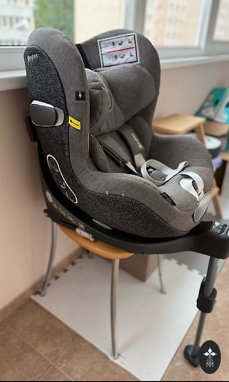 paminkštintas, nuimamas ir skalbiamas skalbimo mašinoje. Atitinka i-Size (R129) standartą. Stabilizuojanti atraminė koja su reguliuojamu aukščiu. Galima montuoti automobilyje naudojant ISOFIX tvirtinimus. Įtrauktas naujagimio įdėklas. Dovana: veidrodėlis prieš važiavimo kryptį (nuotrauka).