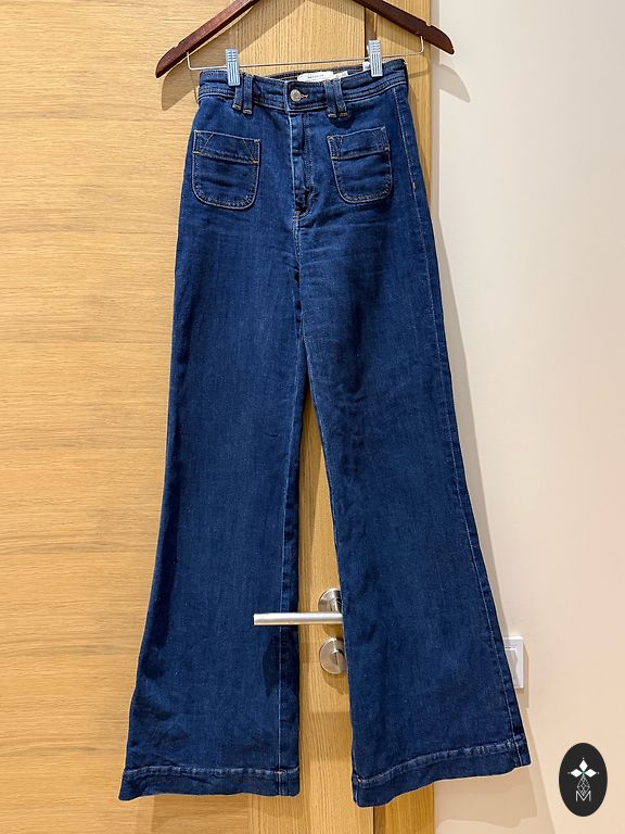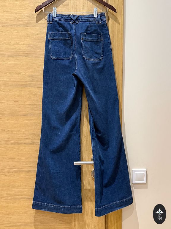Selling used women's jeans in classic blue color. Slim, form-fitting, comfortable for everyday wear. ℹ️ Important: all inner tags have been cut off, so the brand and exact manufacturer size are unknown. Please refer to the measurements. 📏 Measurements (measured flat): Waist: 33 cm Hips: 44 cm Length (including waistband): 93 cm Inseam length: 70 cm Condition is good, without significant defects. Shipping costs are not included in the price. Available in Jūrmala or Old Riga.