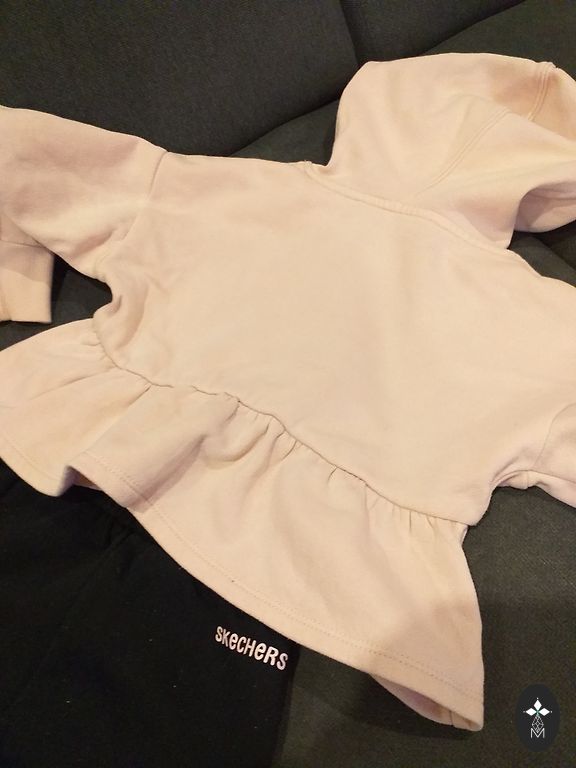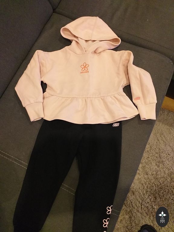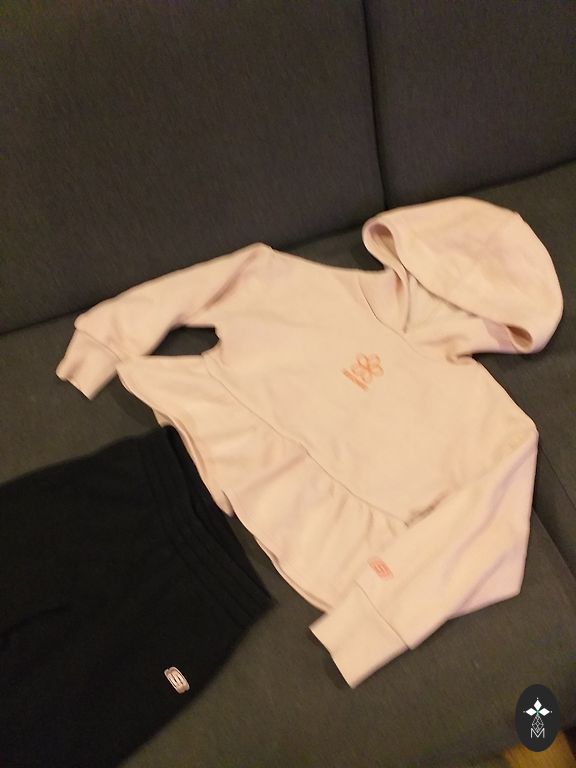 Rinkinys mergaitei. Trečioje nuotraukoje kairėje pusėje 2 juodi šventiniai sijonai ir rožiniai, dešinėje pusėje 3 šortai ir vienas gražus kostiumas - taip pat su šortais. Visi maždaug 140-152 cm...